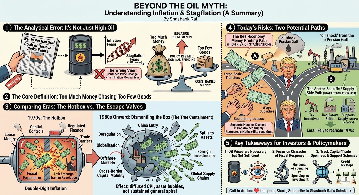 As Oil prices have turned volatile with the war in Persian gulf and the choke points in the Strait of Hormuz, fears of inflation have resurfaced. Close on the heels of inflation paranoia, there are fears of stagflation. The logic is seductively simple: higher oil prices push up inflation and squeeze growth, so a big enough spike must inevitably produce the 1970s all over again. That view is wrong in ways that matter for both policy and markets. It confuses a change in relative prices with inflation itself, mistakes the symptom for the disease, and misreads the very history it claims as precedent.